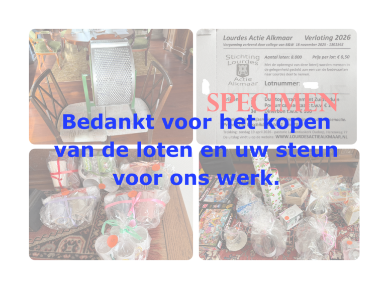 De trekking heeft plaats gevonden op zondag 19 april 2026 om 19.30 uur in de pastorie van de H. Laurentiuskerk, Herenweg 77 te Oudorp (gem. Alkmaar).
